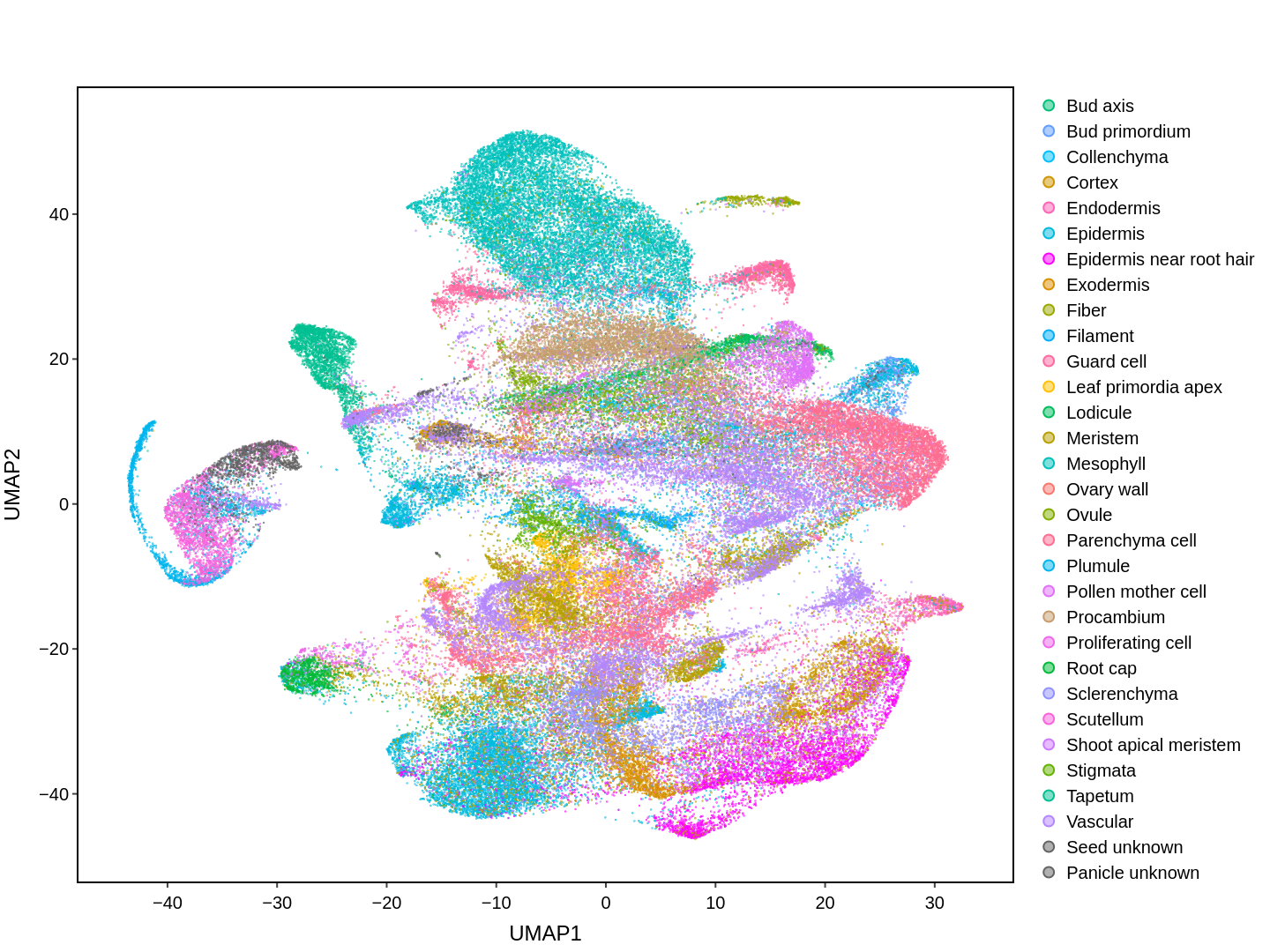 Cell functions across eucaryotes are driven by specific gene expression programs that are dependent on chromatin structure. Here, we report a single-cell multiomics atlas of rice, one of the major crop plants. We simultaneously profiled chromatin accessibility and RNA expression in 116,564 cells from eight organs. We annotated the majority of cell types and identified cell-type expression programs, and found a high correlation between RNA and chromatin accessibility across cells. We constructed single-cell gene regulatory networks and co-expression networks, which allowed us to identify the cell type-specific regulators RSR1, F3H and LTPL120 in rice development. Furthermore, our analysis revealed a correlation between cell type and agronomic traits of rice, and the conserved and divergent functions of cell type during evolution. In summary, this study not only offers a valuable single-cell multiomics resource, but also enriches our understanding of the intricate roles and molecular underpinnings of individual cell types in rice.